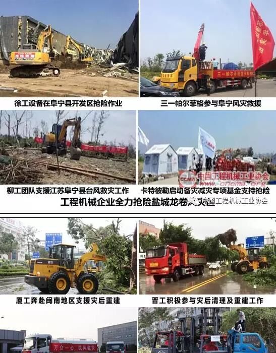 2015年底以來,深圳發(fā)生大范圍滑坡災害、江蘇鹽城市阜寧、射陽等地出現(xiàn)強對流天氣、超強龍卷風襲擊、閩南地區(qū)遭遇強臺風“莫蘭蒂”……在這些災害發(fā)生時,廈工、晉工、中聯(lián)重科、林德叉車、徐工、三一帕爾菲格、柳工、卡特彼勒等工程機械企業(yè)快速反應,迅速集結(jié)救援設備,第一時間投入到搶險救援中去。紛紛派出大型工程機械設備和援助隊伍加入到救援與災后重建工作,并向災區(qū)捐款捐物、捐贈機械設備,展現(xiàn)了工程機械行業(yè)企業(yè)一如既往的強烈社會責任感和崇高的奉獻精神。