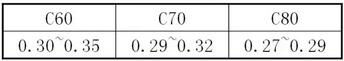 對(duì)于高強(qiáng)混凝土(C60以上)砂率控制在33%~36%。