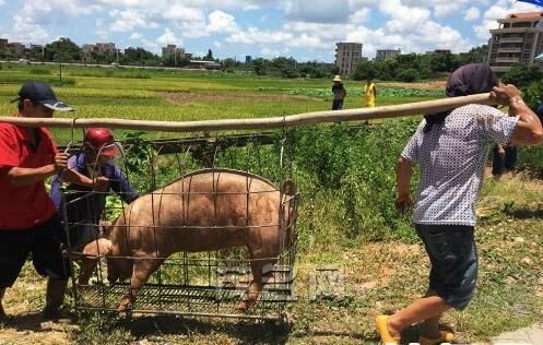 事故發(fā)生后,豬場(chǎng)老板叫來(lái)了另一輛貨車轉(zhuǎn)運(yùn)生豬。要將一頭一兩百斤重的生豬重新裝運(yùn)上車并不容易,這些受到了驚嚇的生豬顯得很不配合,需要兩三個(gè)人連拉帶拽才能把生豬趕進(jìn)籠子里裝運(yùn)上車。眾人用了兩個(gè)多小時(shí)才將生豬全部運(yùn)走。