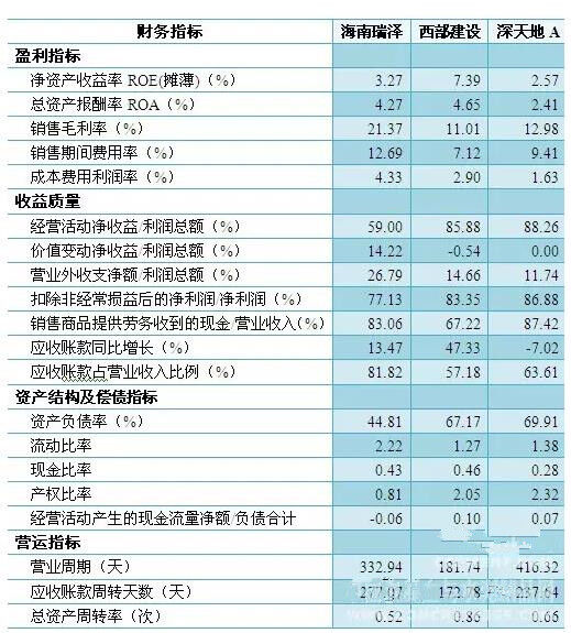 西部建設、深天地的資產負債率復合行業(yè)平均水平,海南瑞澤負債率較低,償債風險偏低,同時其他償債指標也顯示海南瑞澤具有較低的債務風險,但由于經營活動產生的現(xiàn)金凈流量為負值,因此主營業(yè)務正常經營的償債能力較弱,有待提升業(yè)務正常經營的穩(wěn)定性和盈利能力。