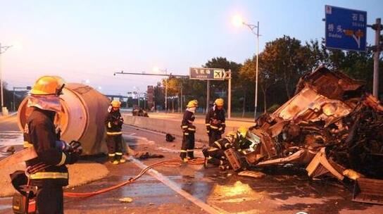 到達(dá)現(xiàn)場(chǎng)后,消防官兵經(jīng)過(guò)現(xiàn)場(chǎng)偵查發(fā)現(xiàn)水泥攪拌車與路中央護(hù)欄猛烈碰撞。事故中,攪拌車車頭損毀嚴(yán)重,車頭零部件散落一地,攪拌車司機(jī)被變形的車頭緊緊卡住,無(wú)法動(dòng)彈,情況萬(wàn)分危急。了解情況后,消防官兵決定利用液壓擴(kuò)張器和撐頂桿對(duì)駕駛室變形部位進(jìn)行破拆,對(duì)被困人員實(shí)施營(yíng)救,并做好現(xiàn)場(chǎng)警戒,防止發(fā)生二次事故。