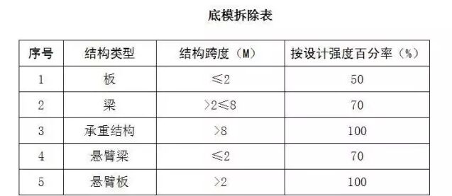 側(cè)模:在混凝土強(qiáng)度能保證表面棱角不因拆除模板而受損壞后,方可拆除。