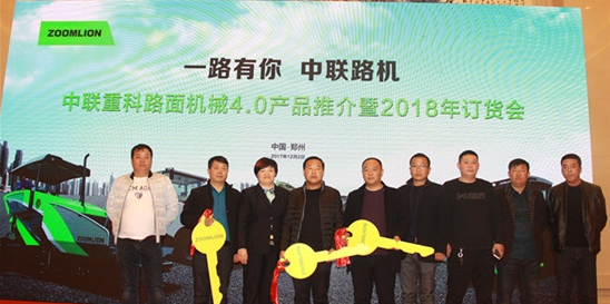2017年12月2日,中聯(lián)重科在河南省黃河迎賓館舉行了主題為“一路有你 中聯(lián)路機(jī)”的路面機(jī)械4.0產(chǎn)品推介會(huì)暨2018年訂貨會(huì)。推介會(huì)上,中聯(lián)重科路面機(jī)械公司副總經(jīng)理周元珍、中聯(lián)重科路面機(jī)械公司營銷公司總經(jīng)理張曉東、中聯(lián)重科路面機(jī)械產(chǎn)品研究所所長龔敬等公司領(lǐng)導(dǎo)與中國建筑第七工程局集團(tuán)有限公司商務(wù)總經(jīng)理魏新保、設(shè)備管理部經(jīng)理?xiàng)罡邆?、鄭州市公路局路通公司副總?jīng)理馬國強(qiáng)、鄭州市瀝青站協(xié)會(huì)會(huì)長朱金安、河南連通路橋有限公司副總經(jīng)理袁偉、等當(dāng)?shù)匦袠I(yè)資深人士,同河南省內(nèi)近兩百位客戶,共商路面機(jī)械產(chǎn)品升級(jí)及項(xiàng)目施工助建方案。