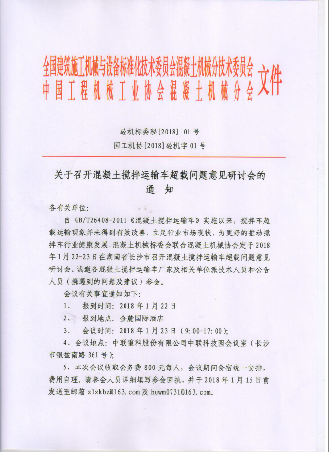 關(guān)于召開(kāi)混凝土攪拌運(yùn)輸車(chē)超載問(wèn)題意見(jiàn)研討會(huì)的通知