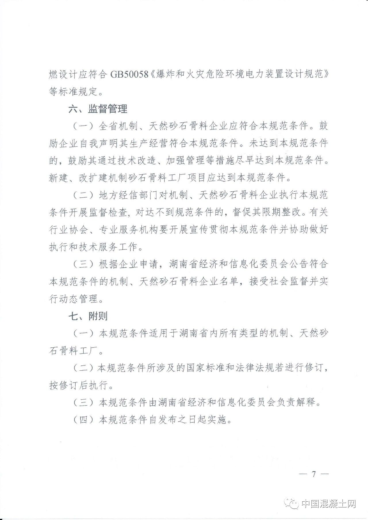 2018年3月2日,湖南省經(jīng)信委《關(guān)于印發(fā)〈湖南省砂石骨料行業(yè)規(guī)范條件〉的通知》(湘經(jīng)信原材料[2018]10號(hào),以下簡(jiǎn)稱《規(guī)范條件》)。該《規(guī)范條件》作為全省規(guī)范性文件已報(bào)省人民政府登記,經(jīng)省政府法制辦審查并依法登記,統(tǒng)一登記號(hào):HNPR—2018—05001。