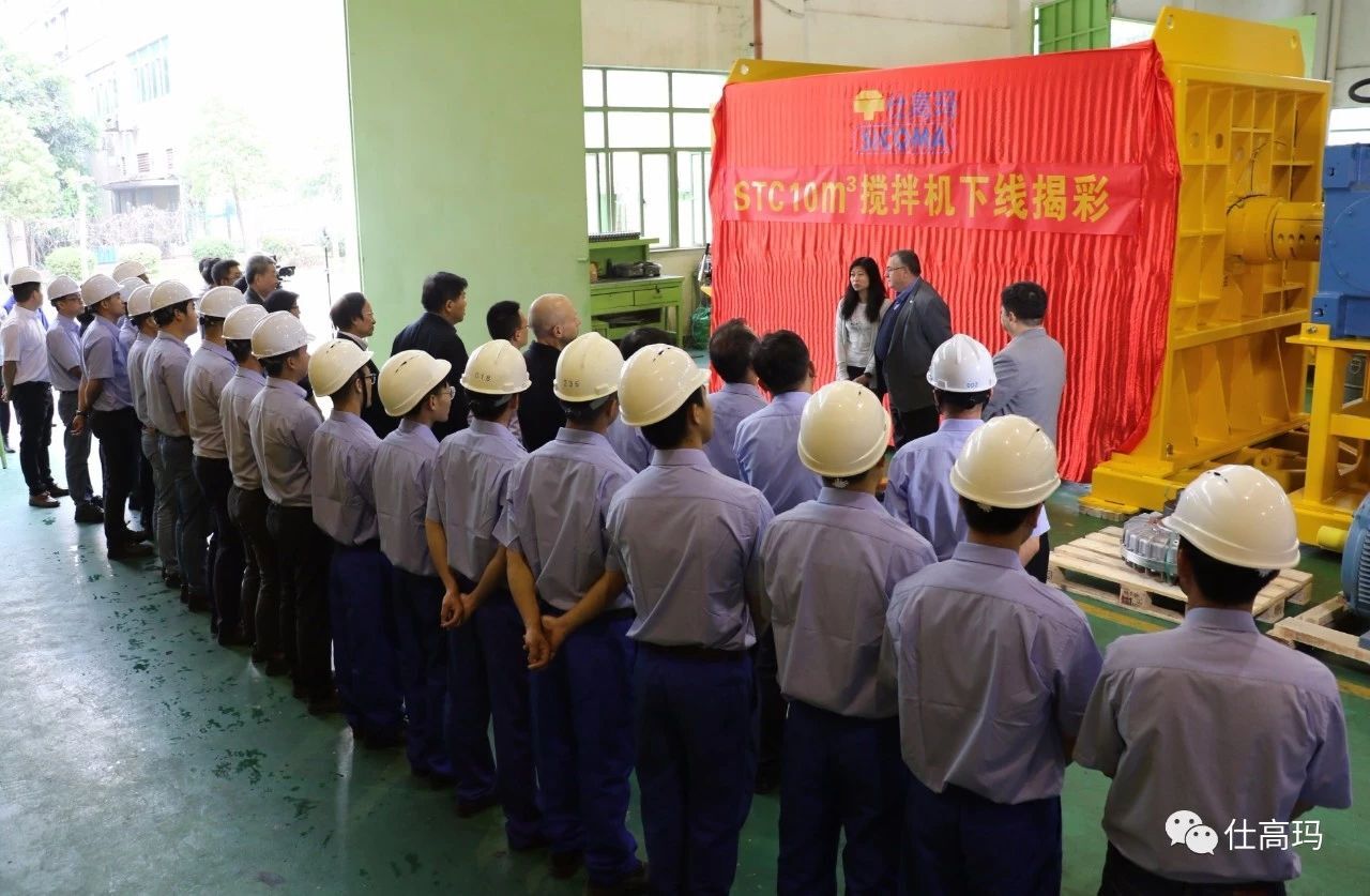2018年4月18日,珠海仕高瑪公司10立方攪拌機(jī)下線揭彩儀式暨攪拌技術(shù)研討會(huì)在珠海仕高瑪公司舉行,中國(guó)工程機(jī)械協(xié)會(huì)混凝土機(jī)械分會(huì)符忠軒會(huì)長(zhǎng)、長(zhǎng)安大學(xué)馮忠緒教授、趙利軍博士、廣東長(zhǎng)大公路工程公司楊東來總工程師、河南萬里路橋李冠峰總工程師、許昌德通特種混凝土公司孟超總經(jīng)理等領(lǐng)導(dǎo)、專家和嘉賓應(yīng)邀出席儀式和研討會(huì),珠海仕高瑪公司股東黃志輝先生、意大利SICOMA公司董事長(zhǎng)Mr. Galletti、總工程師Marco、珠海仕高瑪公司總經(jīng)理郗俊峰先生、財(cái)務(wù)總監(jiān)唐志敏女士及公司技術(shù)研發(fā)團(tuán)隊(duì)、生產(chǎn)團(tuán)隊(duì)、銷售團(tuán)隊(duì)、售后團(tuán)隊(duì)參加本次活動(dòng)。