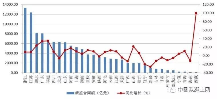 圖3 2018年上半年各地區(qū)建筑業(yè)企業(yè)新簽合同額及增速