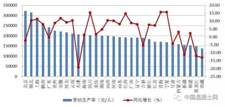 圖6 2018年上半年各地區(qū)按建筑業(yè)總產(chǎn)值計算的勞動生產(chǎn)率及增速