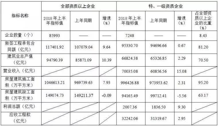 住房和城鄉(xiāng)建設(shè)部匯總的7248個特、一級資質(zhì)建筑業(yè)企業(yè)2018年上半年主要指標(biāo)數(shù)據(jù)如下(表1)。
