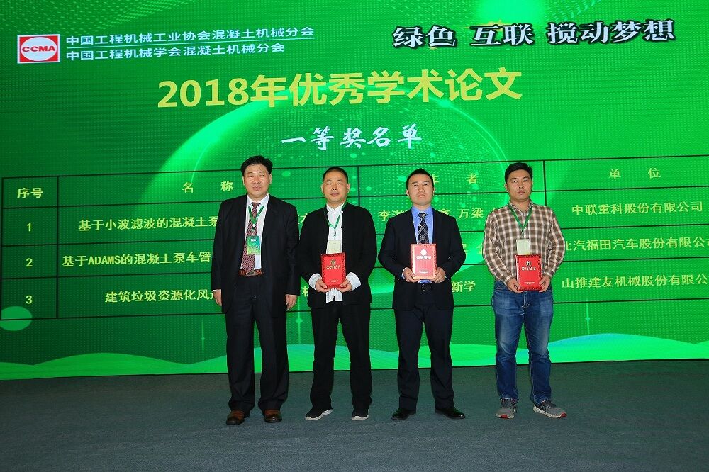 中國工程機(jī)械工業(yè)協(xié)會混凝土機(jī)械分會與中國工程機(jī)械學(xué)會混凝土機(jī)械分會聯(lián)合召開年會已有好幾年了,推動混凝土機(jī)械行業(yè)技術(shù)進(jìn)步是我們共同的目標(biāo),聯(lián)合開展的行業(yè)優(yōu)秀論文評選活動,引起行業(yè)企業(yè)及大專院校的廣泛參與。2018年“綠色 互聯(lián) 攪動夢想”論文集收集了所有評選論文28篇,從這些論文中,評委會評出了《基于小波濾波的混凝土泵車安全控制技術(shù)研究》等一等獎3篇,《混凝土泵車SX型下車結(jié)構(gòu)分析》等二等獎5篇,《混凝土泵車臂架運(yùn)動速度控制研究》等三等獎8篇。我們向獲獎?wù)弑硎咀YR,向企業(yè)組織者表示感謝!讓我們共同為推進(jìn)混凝土機(jī)械行業(yè)技術(shù)進(jìn)步而努力!