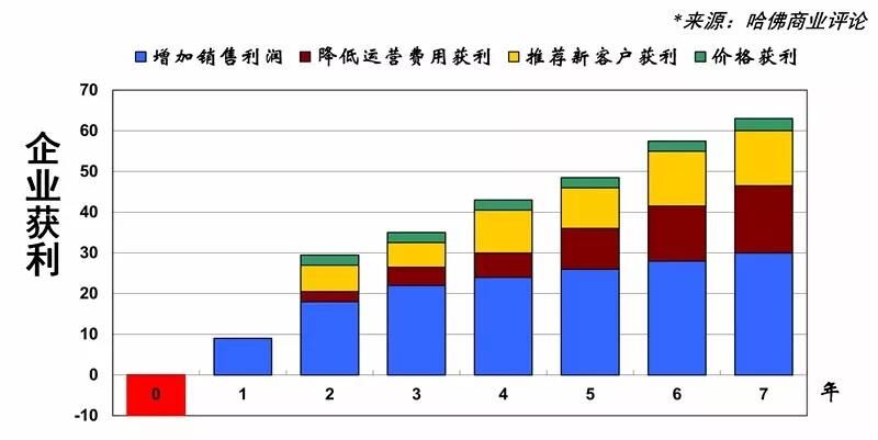 70%參與調(diào)研的公司都認(rèn)為,留住老客戶比吸引新客戶更加合算,因?yàn)槲驴蛻粜枰獜念^建立信任,其中的市場(chǎng)宣傳、廣告投入和營(yíng)銷費(fèi)用都十分昂貴,貝恩公司的研究報(bào)告顯示,客戶保持率增加5%,企業(yè)利潤(rùn)可以提升25%~95%,這正是老客戶的“溢價(jià)效應(yīng)”。