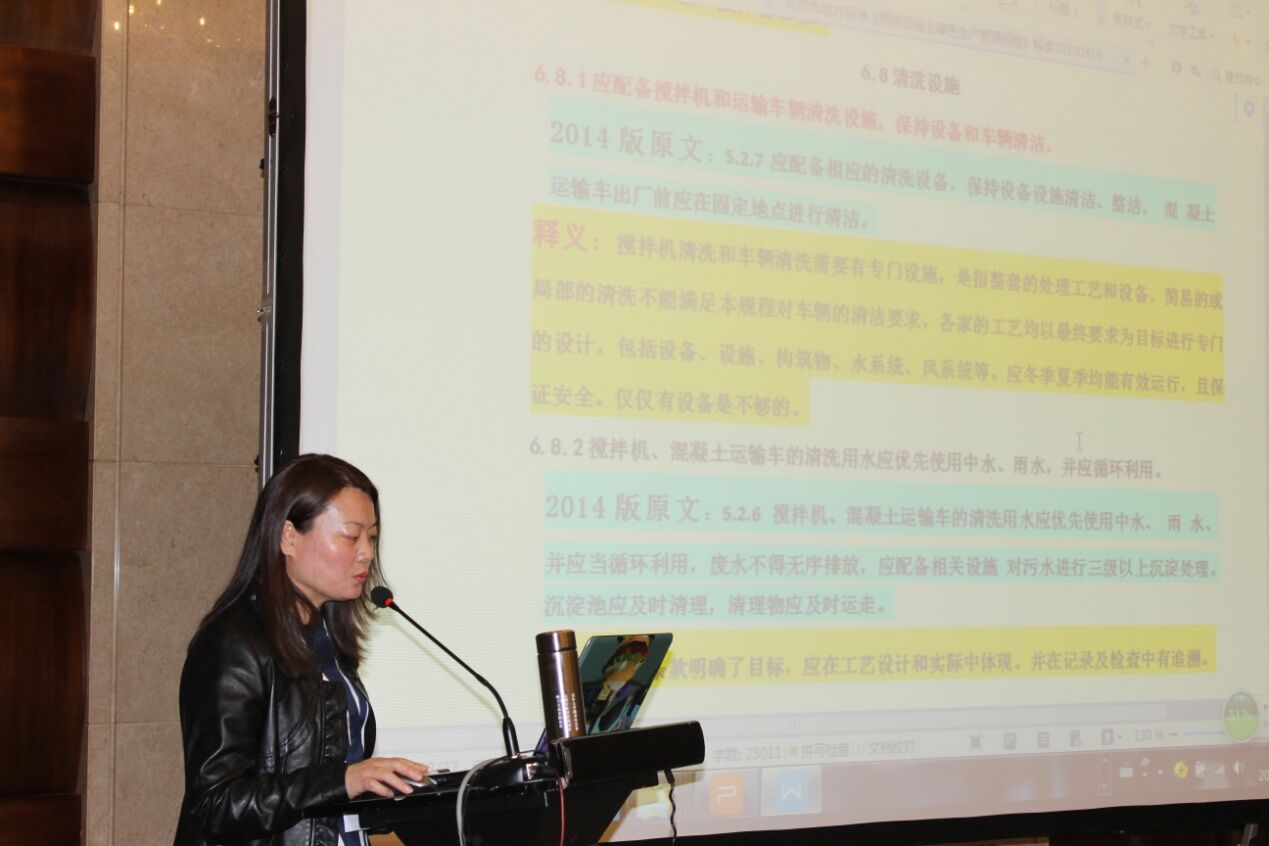 北京市砼協(xié)會(huì)秘書(shū)長(zhǎng)齊文麗女士對(duì)《預(yù)拌混凝土綠色生產(chǎn)管理規(guī)程》及北京市“治超治限”政策解讀作了詳盡的講解。尤其是切合本次攪拌運(yùn)輸車(chē)研討的主題,重點(diǎn)闡述了攪拌車(chē)在政策當(dāng)中超限問(wèn)題、攪拌車(chē)清潔問(wèn)題,并對(duì)全封閉工作作出解讀。政策規(guī)定是詳盡和嚴(yán)謹(jǐn)?shù)模幜P力度也是非常之大,從首都北京的政策解讀中讓與會(huì)者感受到了行業(yè)發(fā)展的方向和設(shè)備生產(chǎn)單位制造改善的方向;