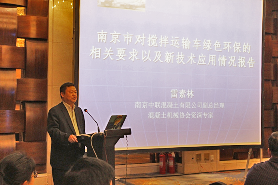 南京中聯(lián)混凝土有限公司副總經(jīng)理、混凝土機(jī)械協(xié)會(huì)資深專(zhuān)家雷素林先生作了《南京市對(duì)攪拌運(yùn)輸車(chē)綠色環(huán)保的相關(guān)要求以及新技術(shù)應(yīng)用情況報(bào)告》的主題演講,從南京環(huán)保和攪拌車(chē)治理過(guò)程中所遇到的問(wèn)題提出了攪拌車(chē)在綠色環(huán)保和新技術(shù)應(yīng)用方面的以下幾點(diǎn)建議:
