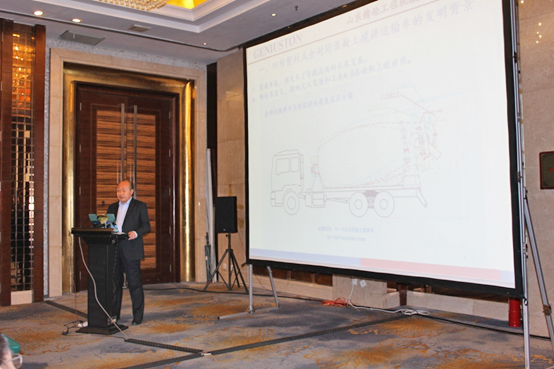 意大利普曼普(PMP)董事長(zhǎng)Luigino POZZO先生作了《全球攪拌運(yùn)輸車(chē)的發(fā)展趨勢(shì)》的主題報(bào)告,Luigino POZZO先生詳細(xì)闡述了歐洲攪拌車(chē)在以下四方面的技術(shù)發(fā)展趨勢(shì)。一是安全性(Safety),二是對(duì)環(huán)境的影響(Environmental impact),三是攪拌(混凝土)質(zhì)量(Quality of mixing),四是操作員舒適性(Ergonomics/Operatorcomfort),并提出歐洲大攪拌運(yùn)輸車(chē)(超過(guò)10立方)是意大利和北歐(荷蘭)市場(chǎng)的主流型號(hào),并已證實(shí)可以提高混凝土運(yùn)輸?shù)男剩怯迷敿?xì)具體的對(duì)比數(shù)據(jù)闡述了這一結(jié)論。Luigino POZZO先生對(duì)國(guó)外攪拌運(yùn)輸車(chē)的發(fā)展趨勢(shì)的闡述給這次研討會(huì)提供了寶貴的意見(jiàn)。