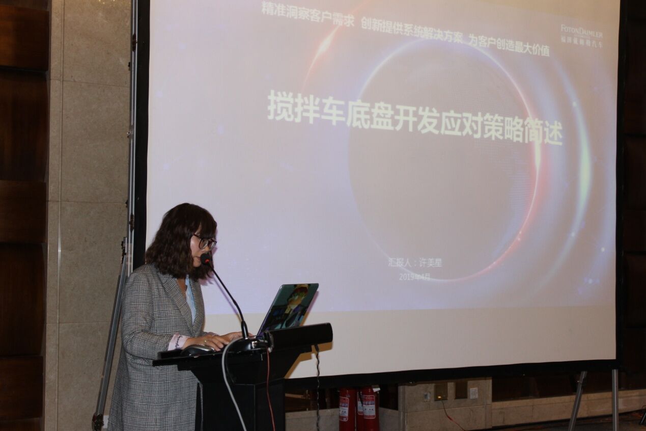 北汽福田汽車(chē)股份有限公司技術(shù)部部長(zhǎng)許美星女士作了《適應(yīng)攪拌車(chē)新法規(guī)之底盤(pán)設(shè)計(jì)》的主題報(bào)告,結(jié)合攪拌車(chē)的發(fā)展趨勢(shì)介紹了重卡發(fā)展的總體趨勢(shì)以及政策法規(guī)制定進(jìn)程,有很多參考的價(jià)值和意義。同時(shí)許部長(zhǎng)還介紹了認(rèn)證體系中的主要應(yīng)對(duì)項(xiàng)以及BFDA產(chǎn)品開(kāi)發(fā)應(yīng)對(duì)策略,讓與會(huì)者對(duì)于配套的底盤(pán)及政策有了更多了解。