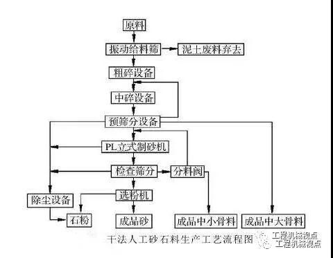 在北方天氣寒冷、干旱、少雨、水資源嚴(yán)重缺乏地區(qū),多采用干法制砂生產(chǎn)工藝。干法制砂生產(chǎn)工藝開(kāi)始于上世紀(jì)90年代中期,經(jīng)過(guò)不斷發(fā)展和完善,逐步解決了干法制砂中的泥土含量、石粉含量和粉塵污染問(wèn)題,不僅在北方中小型砂石廠廣泛應(yīng)用,而且在南方大中型水電人工砂石料系統(tǒng)也大量采用。