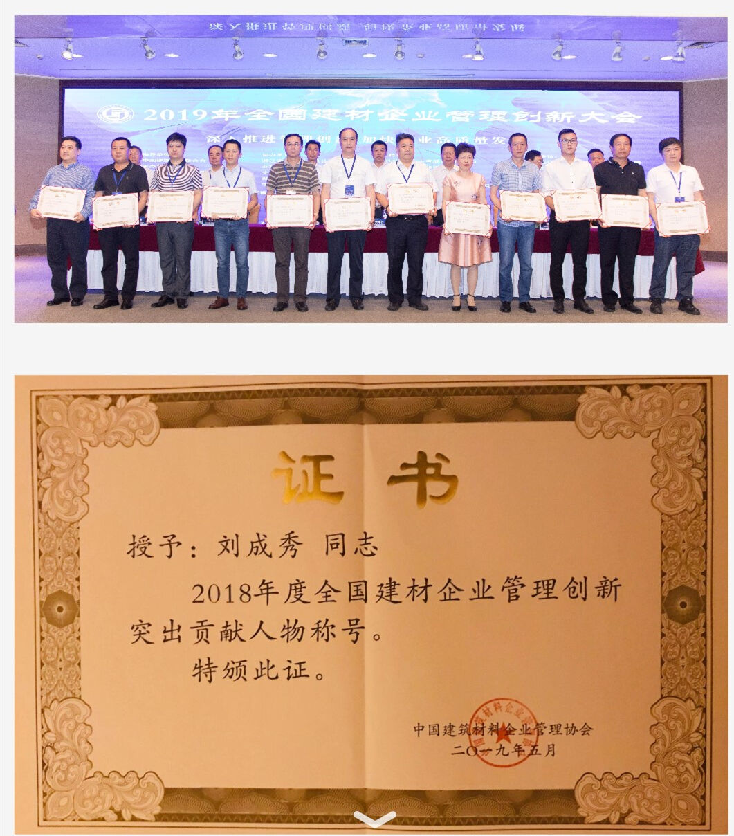為深入學(xué)習(xí)貫徹習(xí)近平新時(shí)代中國(guó)特色社會(huì)主義思想和 黨的十九大精神,落實(shí)《中共中央、國(guó)務(wù)院關(guān)于營(yíng)造企業(yè)家健康成長(zhǎng)環(huán)境弘揚(yáng)優(yōu)秀企業(yè)家精神更好發(fā)揮企業(yè)家作用的意見(jiàn)》 (中發(fā)〔2017〕25 號(hào)),深入實(shí)施工業(yè)和信息化部等 11 部委 聯(lián)合下發(fā)的《關(guān)于引導(dǎo)企業(yè)創(chuàng)新管理提質(zhì)增效的指導(dǎo)意見(jiàn)》(工信部聯(lián)產(chǎn)業(yè)〔2016〕245 號(hào)),進(jìn)一步推動(dòng)建材企業(yè)高質(zhì)量發(fā)展,促進(jìn)企業(yè)轉(zhuǎn)型升級(jí)和提質(zhì)增效,中國(guó)建筑材料企業(yè)管理協(xié)會(huì)于 2018 年 12 月~2019 年 4 月開(kāi)展了“2018 年度全國(guó)建材 企業(yè)管理現(xiàn)代化創(chuàng)新成果和管理創(chuàng)新突出貢獻(xiàn)人物”審定活動(dòng),歷時(shí)五個(gè)月,經(jīng)初審、終審,評(píng)選出百位全國(guó)建材行業(yè)優(yōu)秀企業(yè)家,其中中國(guó)工程機(jī)械協(xié)會(huì)混凝土機(jī)械分會(huì)成員—— 成都金瑞建工機(jī)械有限公司劉成秀董事長(zhǎng)獲得“2018 年度全國(guó)建材企業(yè)管理創(chuàng)新突出貢獻(xiàn)人物”稱號(hào)!