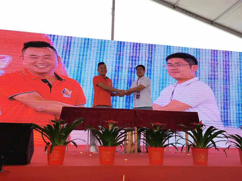 山東八達(dá)國際工程機械有限公司于保成副總經(jīng)理與山東天宇建設(shè)機械股份有限公司姜山總裁進(jìn)行現(xiàn)場簽約儀式
