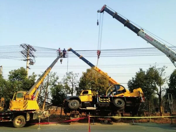 作業(yè)時(shí)須設(shè)專人監(jiān)護(hù),調(diào)動(dòng)時(shí),應(yīng)執(zhí)行“機(jī)調(diào)人隨”,尤其吊車作業(yè)前需提前聯(lián)系電力部門人員(鐵塔命名牌上一般都有聯(lián)系電話)現(xiàn)場(chǎng)校核,滿足作業(yè)條件方可開工。