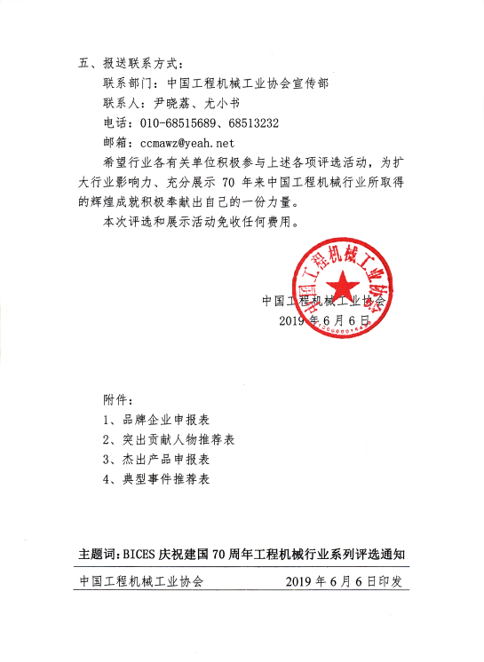 關(guān)于開展BICES慶祝建國70周年工程機械系列行業(yè)評選的通知