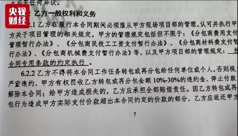 至于永利捷與下游企業(yè)繼續(xù)進(jìn)行分包的事宜,記者也獲得了一份永利捷公司與下游公司簽訂的合同。而法律專家表示,從永利捷公司往下的一系列轉(zhuǎn)包分包行為均涉嫌違法。