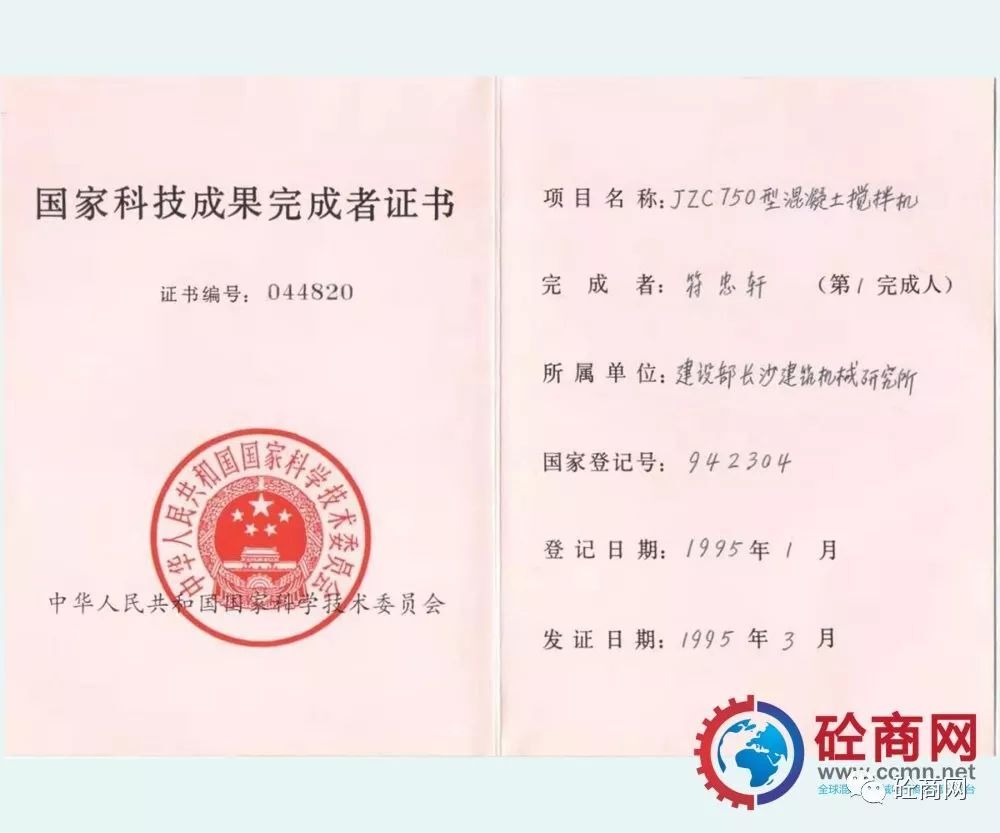 通過全行業(yè)的不懈努力,改革統(tǒng)型機型的結(jié)構(gòu)與技術(shù),新型混凝土攪拌機取得了突飛猛進的發(fā)展,并在全國推廣使用,獲得用戶廣泛的認可與好評。長沙建機院負責(zé)的、本人作為主要參與設(shè)計者的“JZ錐形反轉(zhuǎn)出料攪拌機系列”獲建設(shè)部1987年科技進步二等獎;代表長沙建機所與方圓集團合作開發(fā)的JZC750混凝土攪拌機,獲得國家科技成果證書。