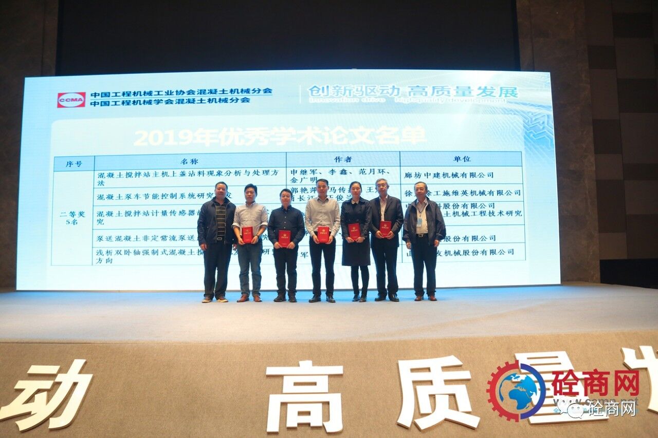 2019年的論文征集評選結(jié)果已經(jīng)揭曉,共收到參評論文26篇,其中會長單位中聯(lián)重科、國家混凝土機械技術(shù)研究中心《基于離散單元法立軸沖擊破碎機成砂率研究》等三篇論文獲得一等獎,副會長單位廊坊中建機械有限公司《混凝土攪拌站主機上蓋沾料現(xiàn)象分析與處理方法》共5篇論文獲得二等獎、中聯(lián)重科、國家混凝土機械技術(shù)研究中心《基于云邊一體的泵車油耗分析研究》等8篇論文獲得三等獎,其余10篇均獲優(yōu)秀論文獎。在此我提議:讓我們以熱烈掌聲向中聯(lián)重科、徐工施維英、廊坊中建機械有限公司三家優(yōu)秀組織單位和論文獲獎人員表示最熱烈的祝賀和最誠摯的感謝——感謝大家為中國混凝土機械行業(yè)的技術(shù)進步所做出的貢獻。