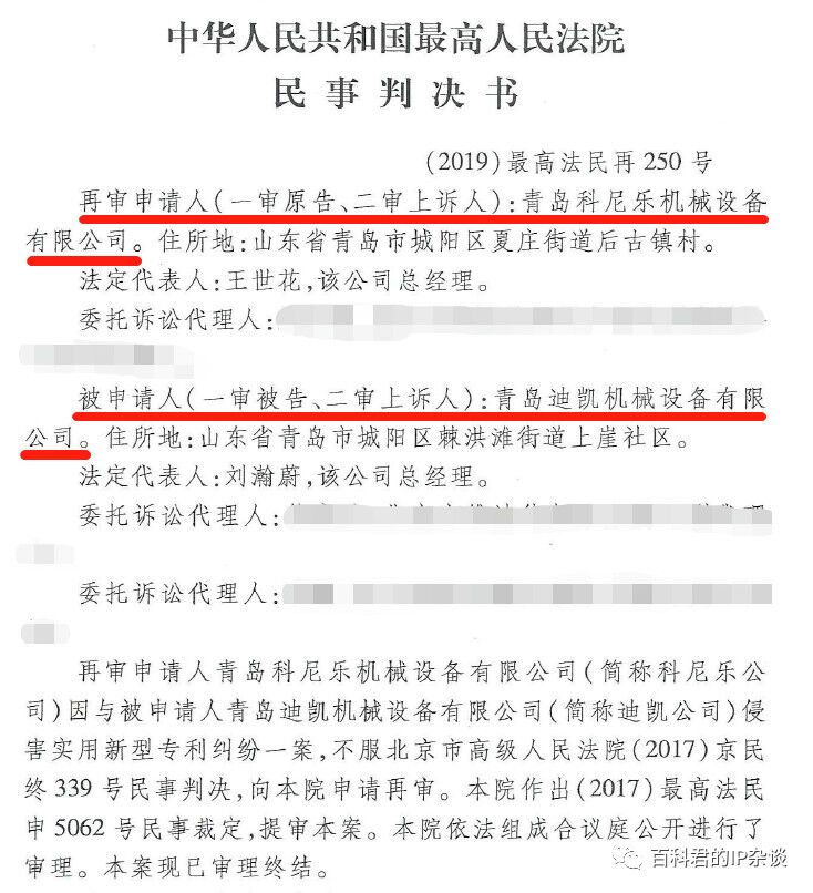 青島科尼樂機械設備有限公司訴青島迪凱機械設備有限公司侵害實用新型專利權糾紛案。