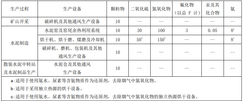 河北省出臺的《水泥工業(yè)大氣污染物超低排放標準》,嚴格了顆粒物、二氧化硫、氮氧化物的排放限值,分別為10mg/m3、30mg/m3、100mg/m3;對烘干機、烘干磨、煤磨及冷卻機系統(tǒng)的顆粒物、二氧化硫、氮氧化物排放限值分別確定為10mg/m3、50mg/m3、150mg/m3。與現(xiàn)行國家標準以及其他省份標準相比,達到了先進水平。對烘干機、烘干磨、煤磨及冷卻機系統(tǒng),在排放限值基礎上增加了脫硝系統(tǒng)氨逃逸控制指標,排放限值為8mg/m3。