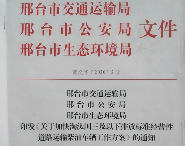 近日,河北邢臺市出臺《關于加快淘汰國三及以下排放標準經(jīng)營性道路運輸柴油車輛工作方案》,引導、鼓勵國三車所有人主動淘汰,對到達報廢期限未報廢的堅決予以取締。