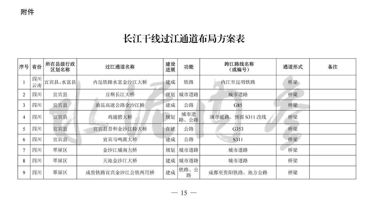 ??四、本《規(guī)劃》主要布局橫跨長江干線主要航道、具有交通功能的過江通道項目,對于連接洲島與沿岸、洲島之間的通道項目和不具備交通功能的跨江、沿江建筑物,由省級發(fā)展改革委統(tǒng)籌布局編制相關規(guī)劃報送我委銜接后組織實施。