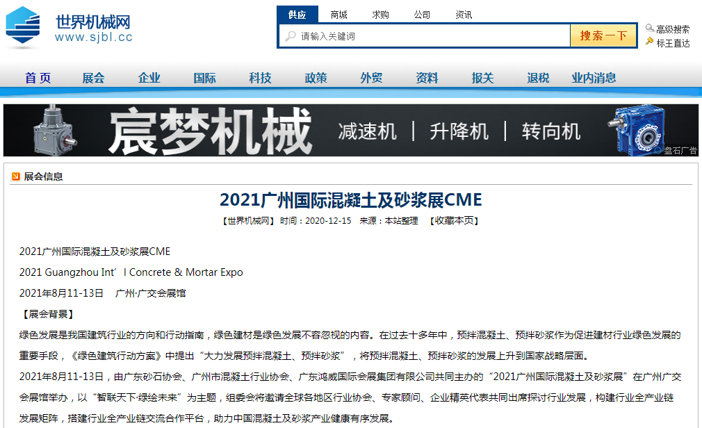 在此,小編就不一一列舉了,再次衷心感謝各大媒體對2021廣州國際混凝土及砂漿展的大力宣傳,為各地的混凝土、砂漿產(chǎn)品、設備代理商、經(jīng)銷商、承包商、進出口貿(mào)易商等業(yè)內(nèi)人士等提供全面了解展會的平臺!