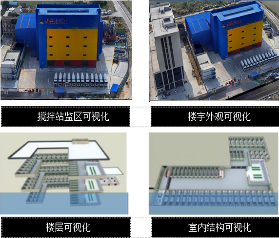 通過3D可視化技術手段,實現(xiàn)攪拌站全場景3D仿真可視瀏覽。場景構建包括攪拌站監(jiān)區(qū)場景、樓宇外觀、樓層、室內結構、特定設備內部等各層級場景的可視化。