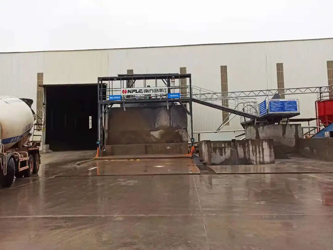 廠區(qū)一角,南方路機(jī)WCRE60設(shè)備一旁地上的漿水罐,具有自動(dòng)排污清污功能,能有效降低漿水濃度,減輕了人工清理成本。設(shè)有定時(shí)攪拌器,定時(shí)啟動(dòng)攪拌器,即可快速將漿水?dāng)嚢杈鶆?,漿水罐有自動(dòng)排污功能,有效地保障了漿水使用后混凝土的安全性。