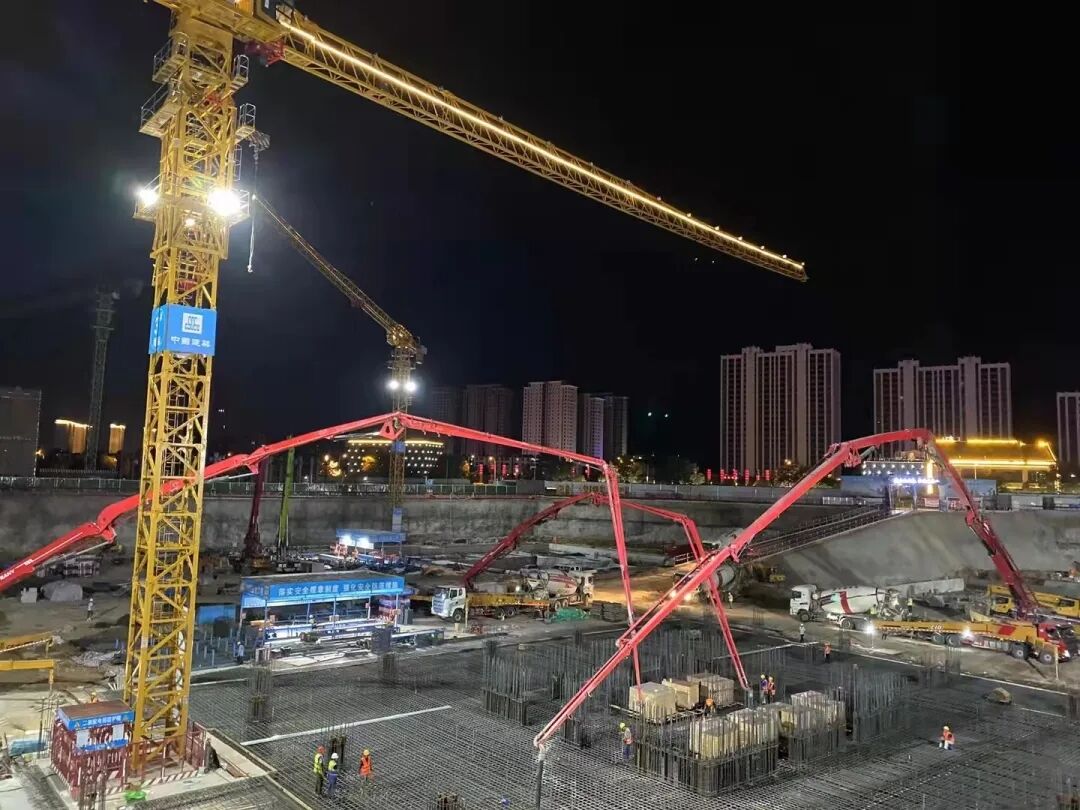 此次施工創(chuàng)造了天水市單次筏板混凝土澆筑量最大及澆筑厚度最大等多項(xiàng)記錄,標(biāo)志著中深財(cái)富中心超高層主體施工已全面展開(kāi)。1號(hào)樓預(yù)計(jì)將在10月份實(shí)現(xiàn)超8000m3澆筑。