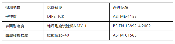 參評項目包括混凝土面層地坪、水泥砂漿面層地坪、整體樹脂地坪系統(tǒng)三大類(下分13種細分地坪)?!癢OCA 地坪獎-亞洲賽區(qū)”(WOCA AWARDS)執(zhí)行國際先進的檢測檢驗標準,對候選項目進行現(xiàn)場性能檢測,依據(jù)三個維度——平整度(FF/FL Testing)、表面耐磨度(BCA Abrasion Testing)、面層粘接強度(Pull-off Adhesion Testing)的測評數(shù)值加權系數(shù)后得出最終分數(shù)進行評選。