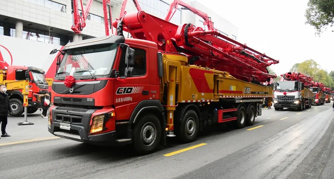 長沙廠區(qū)主干道上,66臺“世界泵王”整裝待發(fā),接受現(xiàn)場各位領(lǐng)導(dǎo)和來賓的檢閱。本次發(fā)貨的產(chǎn)品涵蓋37米、43米、56米等多款明星產(chǎn)品,更有S系列泵車的大力加持,大部分為國六新品。