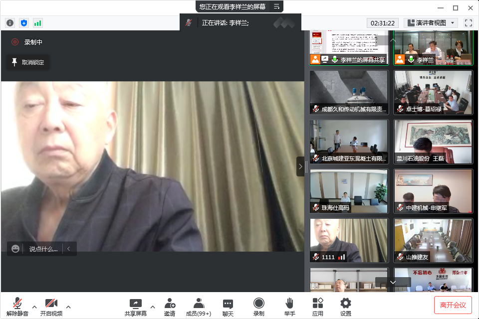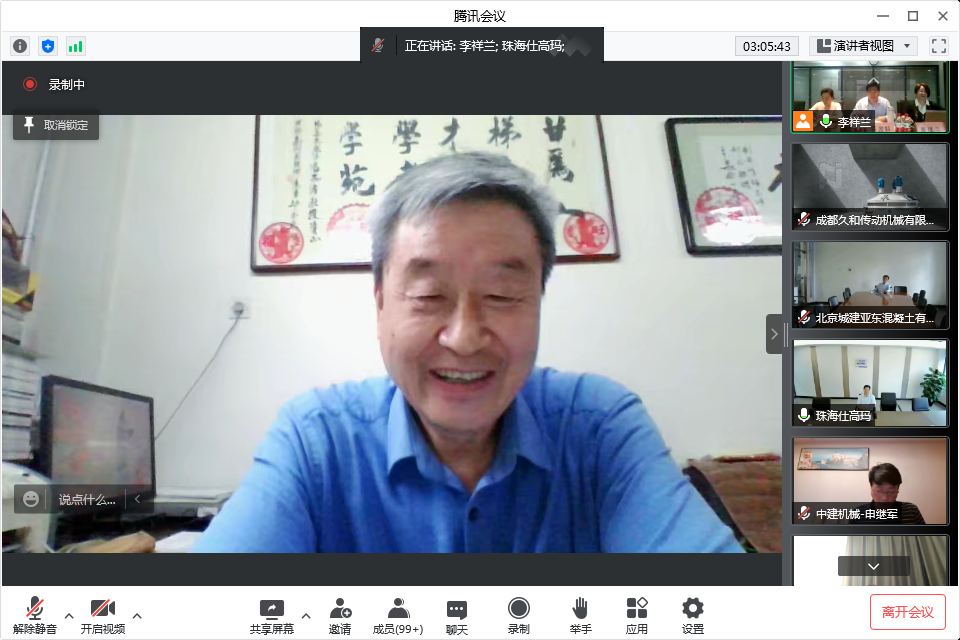 混凝土機(jī)械分會(huì)的年會(huì)還得到很多行業(yè)老前輩,專家、高工、行業(yè)精英的關(guān)注和支持,在自由交流環(huán)節(jié),中國工程機(jī)械工業(yè)協(xié)會(huì)名譽(yù)會(huì)長祁俊祁會(huì)長也發(fā)言祝賀,首先祝賀大會(huì)線上會(huì)議開的非常成功,他呼吁現(xiàn)在中國混凝土機(jī)械在全世界已占主導(dǎo)地位,站在領(lǐng)跑位置,肯定了行業(yè)的領(lǐng)先性,但由于各種因素的疊加,行業(yè)也到了最困難的時(shí)候,協(xié)會(huì)要增加上下游的互動(dòng),爭取支持,抱團(tuán)取暖,希望混凝土機(jī)械在工程機(jī)械整個(gè)領(lǐng)域大家共同進(jìn)步,相互幫扶渡過難關(guān)。