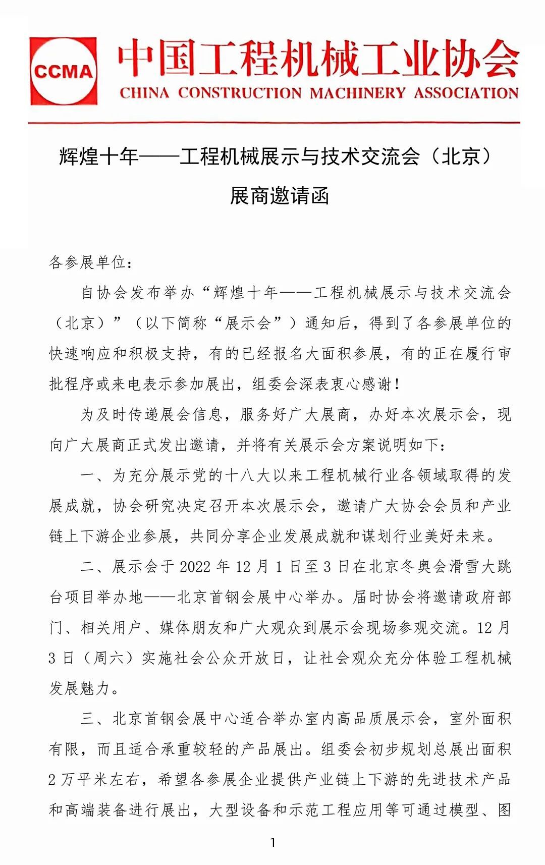 展商邀請函:輝煌十年——工程機(jī)械展示與技術(shù)交流會(huì)(北京)