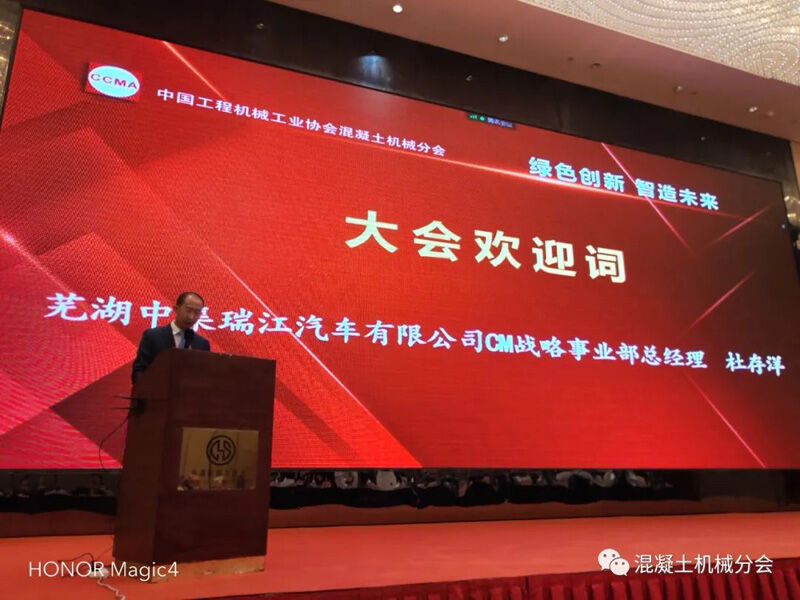 由蕪湖中集瑞江汽車有限公司 CM 戰(zhàn)略事業(yè)部總經(jīng)理杜存洋先生致大會(huì)歡迎詞,他代表中集瑞江汽車有限公司向大會(huì)的順利召開表示熱烈的祝賀!對(duì)與會(huì)領(lǐng)導(dǎo),各位業(yè)界資深專家和行業(yè)同仁表示了熱烈的歡迎并預(yù)祝大會(huì)圓滿成功!