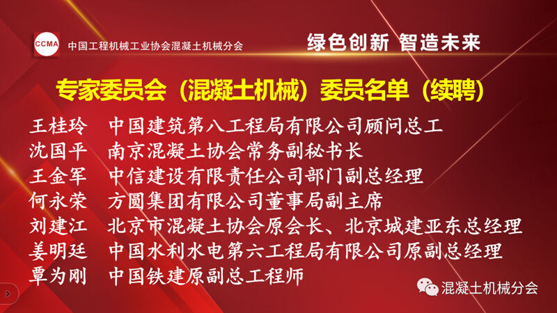 中國(guó)工程機(jī)械工業(yè)協(xié)會(huì)混凝土機(jī)械分會(huì)會(huì)長(zhǎng)符忠軒宣讀兩份通知。一份為《關(guān)于2022年中國(guó)工程機(jī)械工業(yè)協(xié)會(huì)專家委員會(huì)(混凝土機(jī)械)委員聘任的通知》,其中中國(guó)工程機(jī)械工業(yè)協(xié)會(huì)專家(混凝土機(jī)械)委員會(huì)(混凝土機(jī)械)續(xù)聘7位,新聘6位委員,共13位。