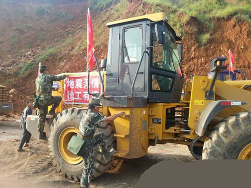 趕到災(zāi)區(qū)的徐工救援隊(duì)指揮徐楠聯(lián)系上當(dāng)?shù)卣筒筷?duì),在辦理好登記等相關(guān)手續(xù)后,積極請(qǐng)戰(zhàn)要求分派任務(wù),主動(dòng)要求到最困難和最需設(shè)備的地方。中國(guó)武警部隊(duì)第三總隊(duì)領(lǐng)導(dǎo)經(jīng)過(guò)現(xiàn)場(chǎng)開會(huì)部署,決定臨時(shí)征用徐工一臺(tái)裝載機(jī)加入武警救援部隊(duì)。