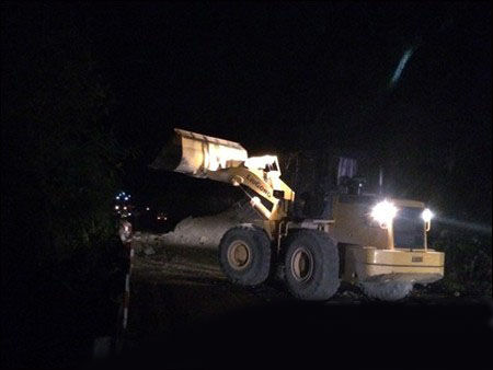 8月11日晚上,303省道巧家段由于下雨引起山體塌方,昭通公路局調(diào)撥的1臺(tái)柳工CLG855裝載機(jī),也在緊張地進(jìn)行搶險(xiǎn)工作。