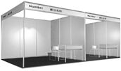 長3米x寬3米x圍板高2.5米,含1張咨詢臺、2把椅子、1個220V電源插座、公司楣板;
