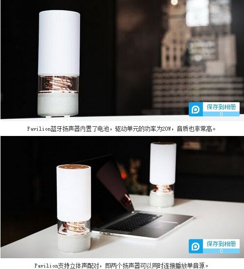 牙3.0和aptX編碼,能夠帶來CD般的音質(zhì)表現(xiàn)。除了單獨(dú)使用之外,你也可以用兩個(gè)Pavilion組成立體聲來播放同一個(gè)音源。