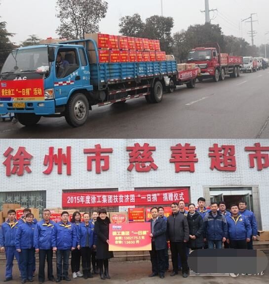 近日,八輛大卡車滿載著徐工全體員工的捐款和衣物,緩緩駛?cè)胄熘菔猩鐣?huì)幫扶中心,送去徐工承擔(dān)的社會(huì)責(zé)任、徐工人的美德。2015年,在各單位的全力支持和全體員工暖暖愛心的捐助下,徐工集團(tuán)扶貧濟(jì)困“一日捐”活動(dòng)共收到捐款1382175.5元、捐衣物13830件,連續(xù)14年捐款捐物全市第一。