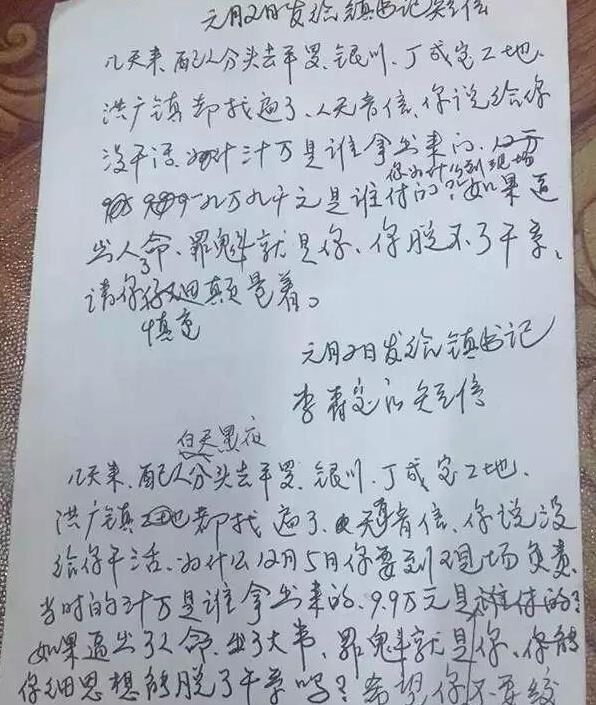 馬父請人代發(fā)鎮(zhèn)委書記短信的底稿