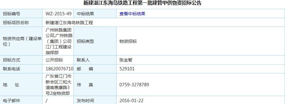 新建湛江東海島鐵路工程第一批建管甲供物資招標(biāo)公告