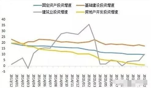 2015年,全國固定資產(chǎn)投資(不含農(nóng)戶)551590億元,比上年名義增長10%(扣除價(jià)格因素,實(shí)際增長12%),增速比1-11月份回落0.2個(gè)百分點(diǎn)。從環(huán)比速度看,12月份固定資產(chǎn)投資(不含農(nóng)戶)增長0.68%。建筑業(yè)固定資產(chǎn)投資總額4895億元,同比增長10.2%,增速較1-11月提高了5.4個(gè)百分點(diǎn)。今年以來,制造業(yè)投資大勢已去,房地產(chǎn)投資降至歷史低點(diǎn)且尚未見底。由于基建投資具有逆周期特性且保持快速增長,穩(wěn)增長寄希望于基建投資托底。發(fā)改委更是密集批復(fù)基建項(xiàng)目助力穩(wěn)增長?;A(chǔ)設(shè)施投資(不含電力)101271億元,比上年增長17.2%,增速比1-11月份回落1個(gè)百分點(diǎn)。其中,水利管理業(yè)投資增長21%,增速回落2.3個(gè)百分點(diǎn);公共設(shè)施管理業(yè)投資增長20.2%,增速回落0.3個(gè)百分點(diǎn);道路運(yùn)輸業(yè)投資增長16.7%,增速回落0.8個(gè)百分點(diǎn);鐵路運(yùn)輸業(yè)投資增長0.6%,增速回落0.2個(gè)百分點(diǎn)。