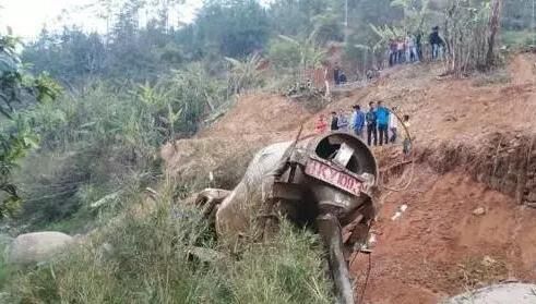 白石人劉某駕駛掛著桂K Y1093號牌的混凝土攪拌車,拉一車混凝土前往白雞村卸完混凝土后其駕車沿省道S370從白雞方向返回, 當車輛行經白雞村干河一下坡急轉彎路段時懷疑閃避2名學生,車輛失控翻下數十米深的溪澗中,當地衛(wèi)生院、公安民警、消防接報先后趕到現場處置開展救援。